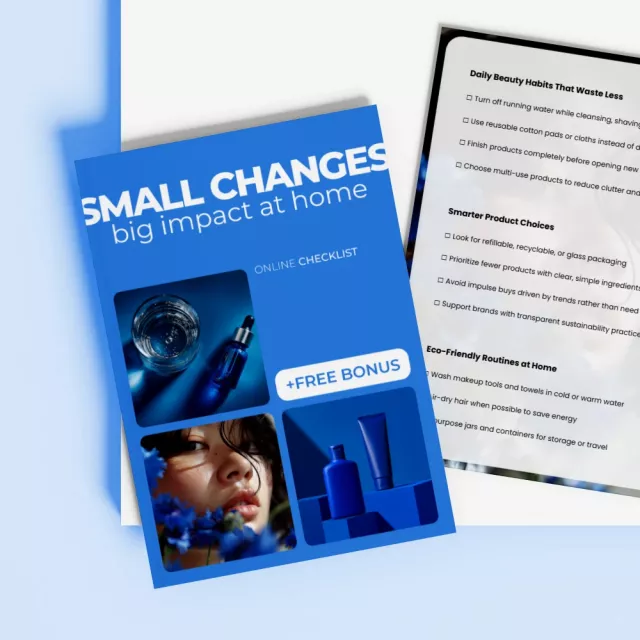 Unlike other guides, Small Changes Big Impact at Home is more than just a set of generic tips. It’s a detailed, well-organized checklist designed for real-life impact. With easy-to-follow advice tailored to modern beauty routines, this resource helps you make smarter choices that are sustainable, simple, and manageable.